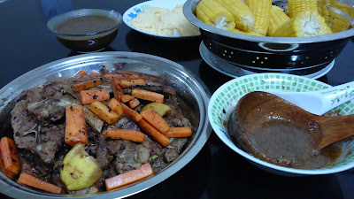 Ambil air rebusan masak lagi sekali, campurkan dengan planta, sos tiram, kicap, lada hitam dan tepung gandum.